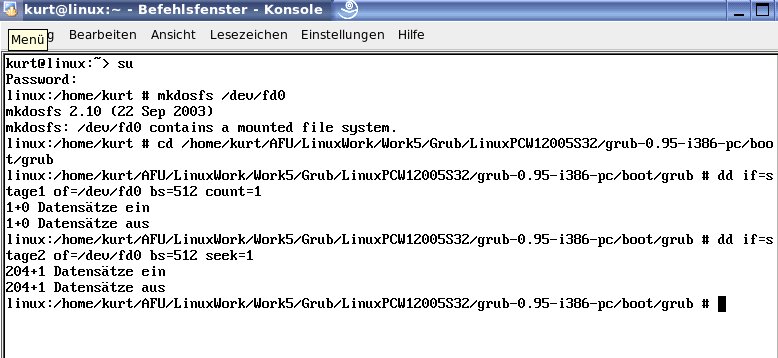 Erstellen einer Boot-Diskette-Grub