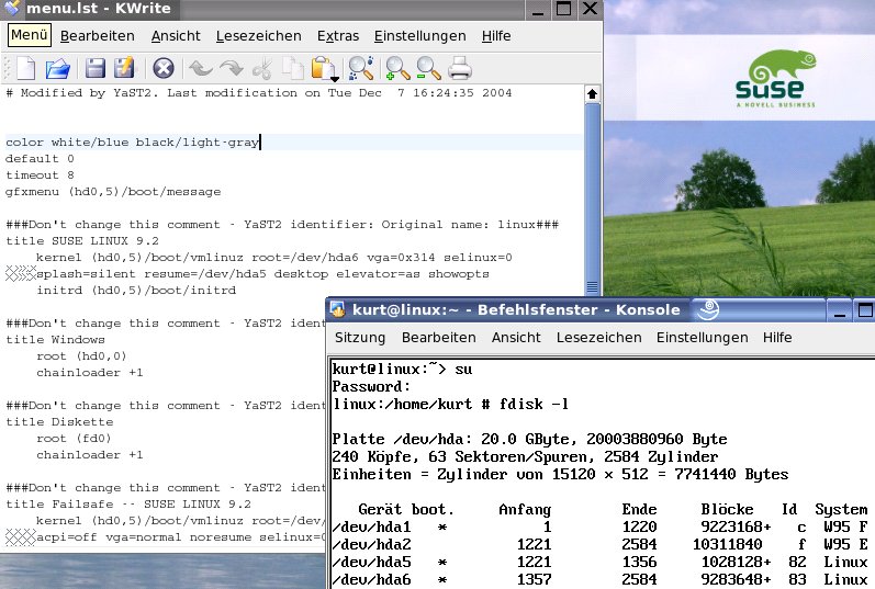 Die menu.lst eines Systems mit mehreren IDE/SCSI-Platten und mehreren
