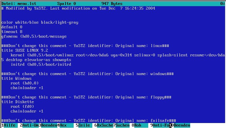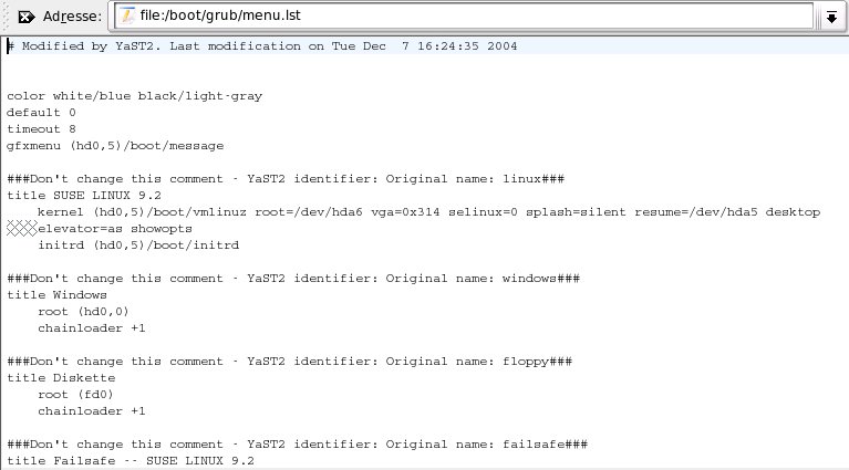 /boot/grub/menu.lst auf die Diskette kopiert werden. (auch